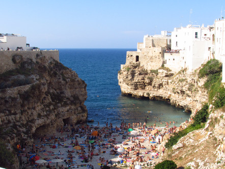 * Polignano a Mare, une petite ville pleine de charme avec une plage atypique au cœur de la ville, mais très touristique (comme on peut voir sur la photo ^^)