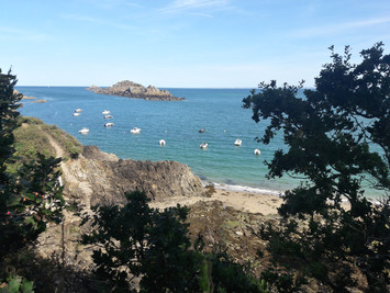 Nous avons trouvé un joli logement sur "airbnb" donnant sur la plage. Pour commencer, nous partons faire une belle randonnée du côté de Cancale, la pointe du Grouin. Nous gardons l'itinéraire du GR34, sentier pédestre permettant de faire le tour de la Bretagne par la côte. Les paysages sont magnifiques! Nous avons de la chance car le soleil est avec nous ce qui rend cette rando encore plus agréable et nous permet d'apercevoir au loin le célèbre Mont St Michel!